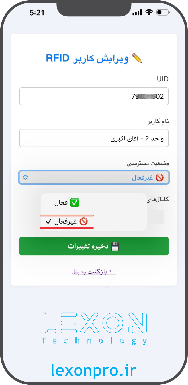 قابلیت ها: مدیریت مجزا هر شخص (اعمال محدودیت، افزودن، ویرایش، حذف) بدون حضور فیزیکی خود کارت