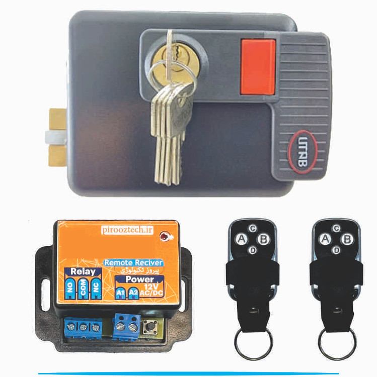 قفل برقی با ضامن دوم قفل شونده 2 ریموت + 5 کلید یوتاب 898 مربعی