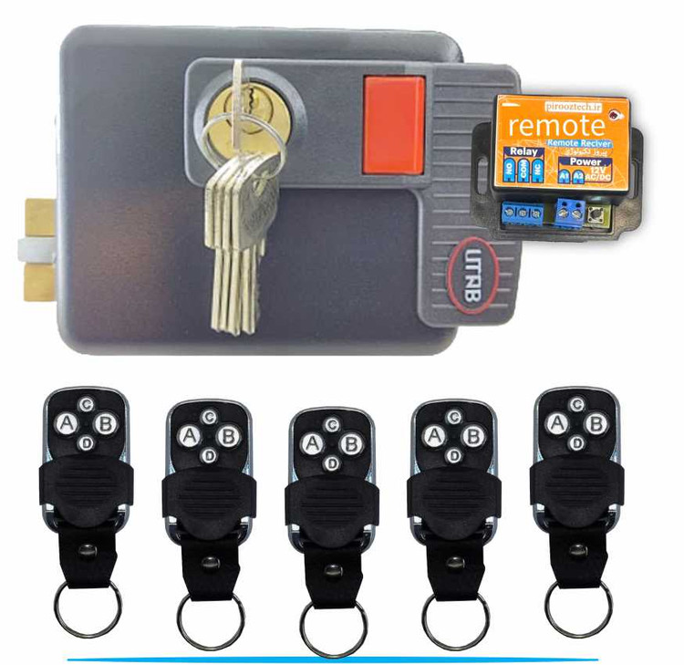 قفل برقی با ضامن دوم قفل شونده 5 ریموت + 5 کلید یوتاب 898 مربعی مرغوب ویلایی ، حیاطی ، مجتمع