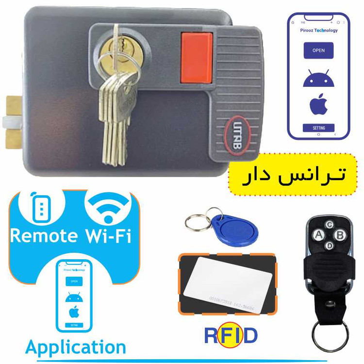 قفل برقی کارتی و تگ RFID و ریموت، قابل اتصال به تلفن همراه (نرم افزار دار) ترانس دار 5 کلید یوتاب 898 مربعی