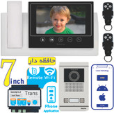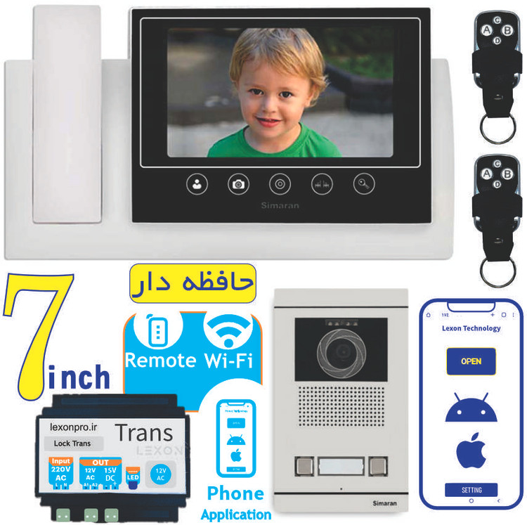 پک آیفون صفحه بزرگ + حافظه سیماران + نرم افزار و ریموت و ترانس دار (مانیتور 7 اینچ حافظه دار + پنل فرداد تک واحد + رسیور قابل اتصال به تلفن همراه ترانس دار + قفل بازکن زنجیری)