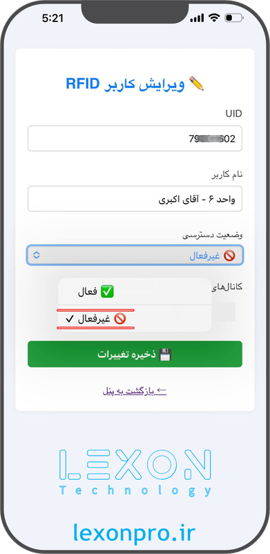 قابلیت ها: مدیریت مجزا هر شخص (اعمال محدودیت، افزودن، ویرایش، حذف) بدون حضور فیزیکی خود کارت